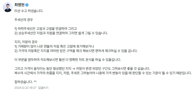 대표님께서 지표를 그릴 때 참고할 사항을 댓글로 남겨주셨었습니다.