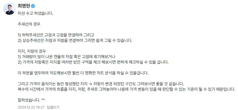 대표님께서 미션진행 때 댓글을 남겨주셨습니다.