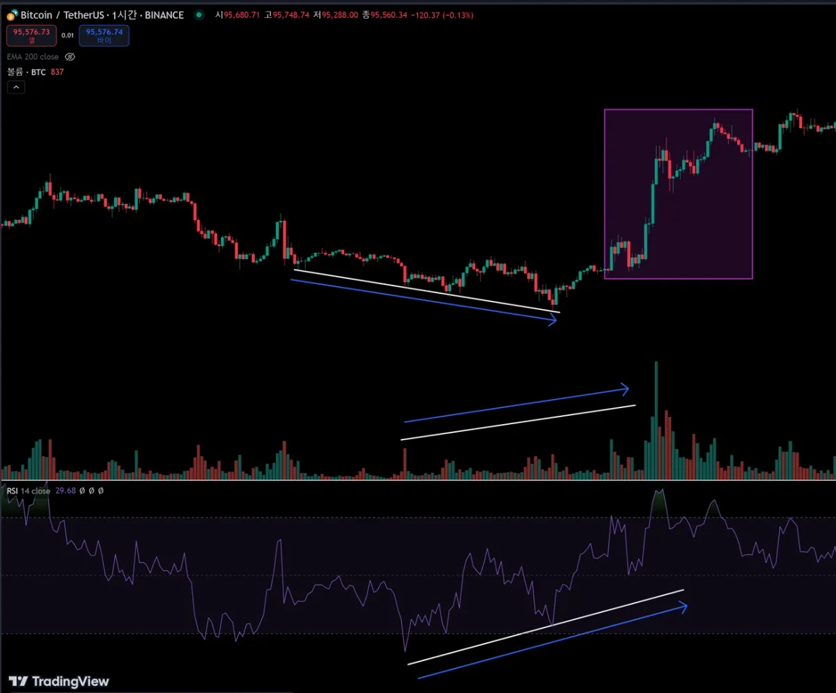 비트코인 1시간봉 상승 다이버전스 입니다.