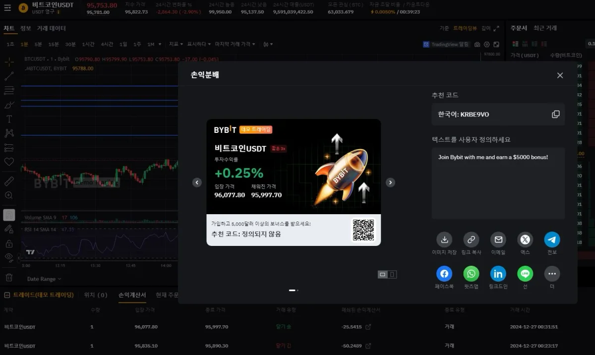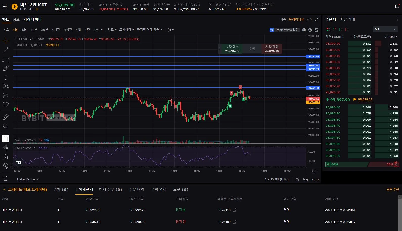 단기 저항선이 보여서 낮은 곳에서 롱으로, 저항선에서 숏으로 진행했는데...투자는 수익인데, 실현된 손익은 손실인 건 수수료 때문인걸까요?
