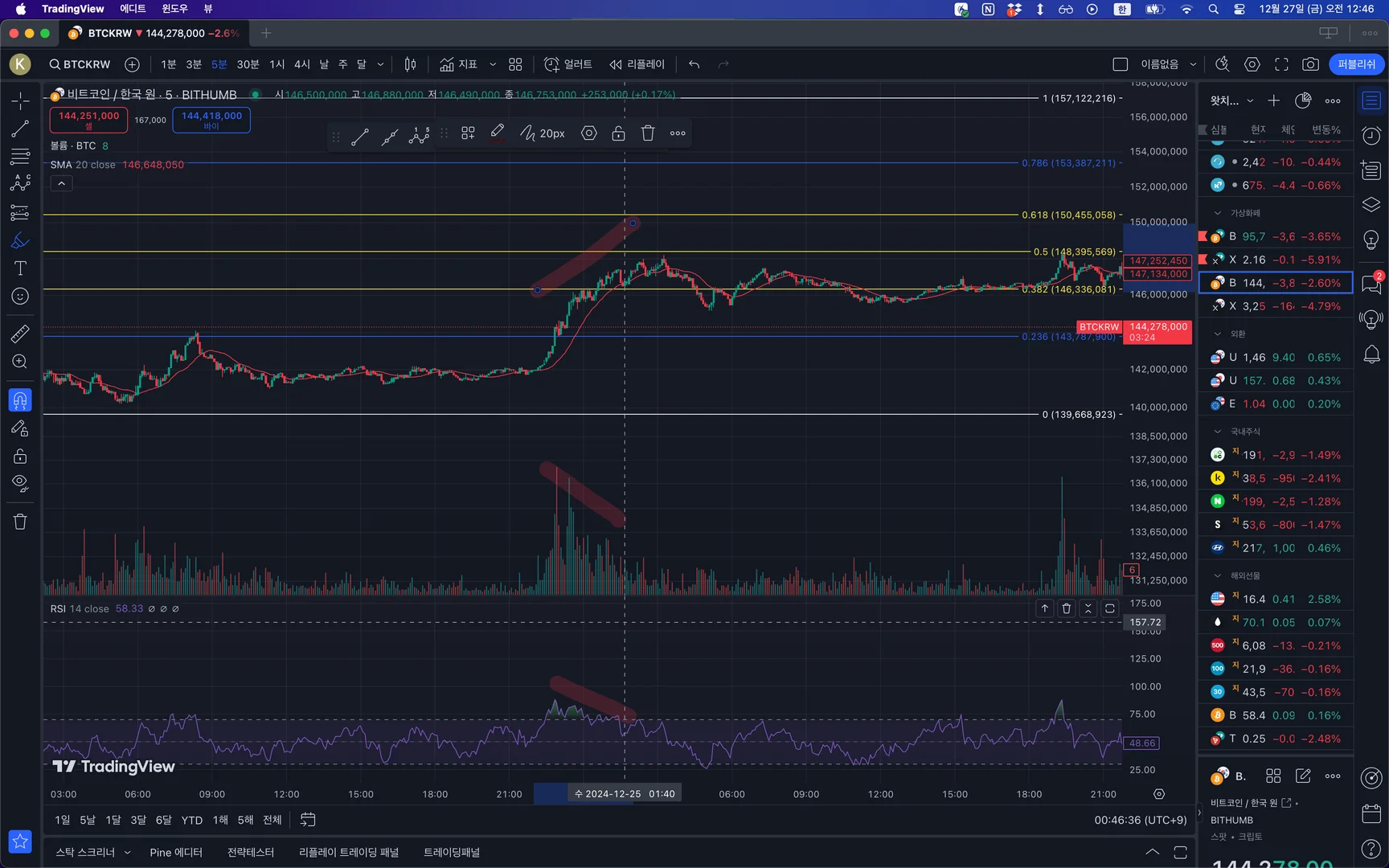 RSI지표 추가 및 다이버전스로 보이는 패턴 추가했습니다.