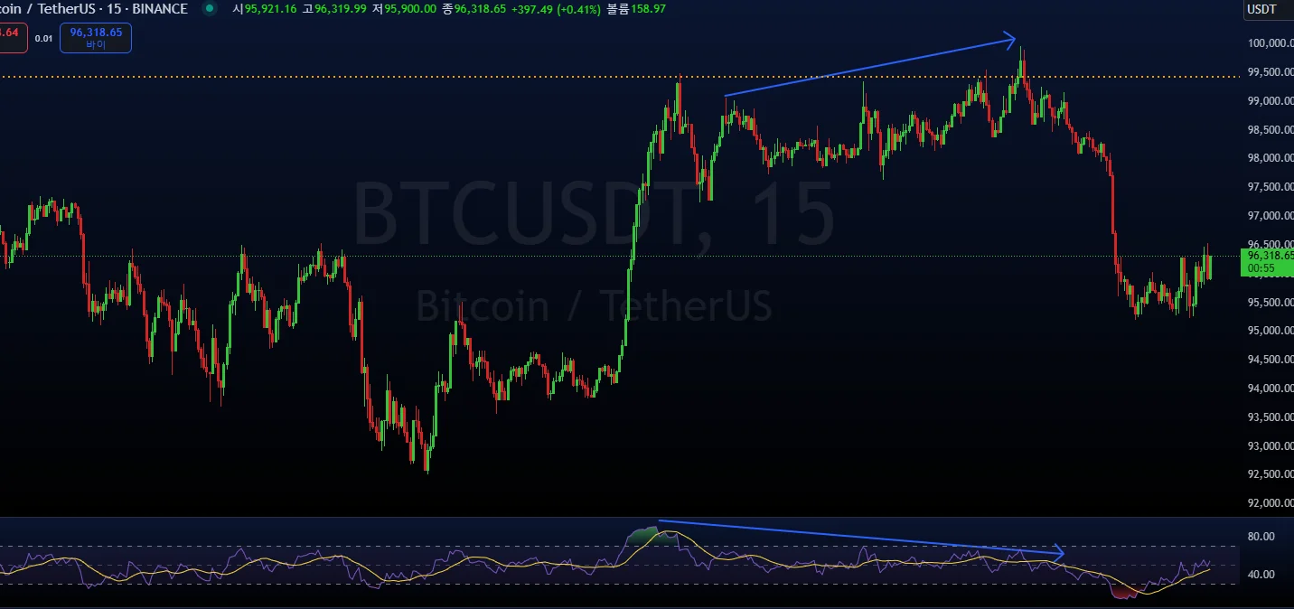 제가 잘 사용할줄 몰라서 인지 사진을 올리고 나니 글이 써지지 않아 댓글에 남깁니다. 가격은 상승하고 rsi는 하락한것으로 보아 시장이 과열상태에 있어서 조정이 온것 같습니다