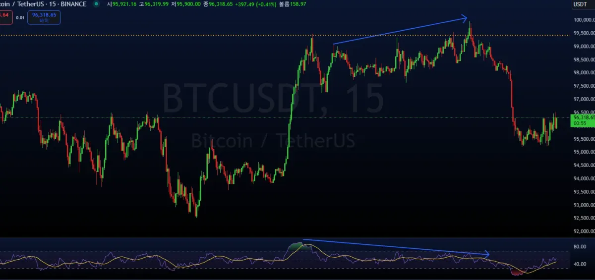 작성자제가 잘 사용할줄 몰라서 인지 사진을 올리고 나니 글이 써지지 않아 댓글에 남깁니다. 가격은 상승하고 rsi는 하락한것으로 보아 시장이 과열상태에 있어서 조정이 온것 같습니다