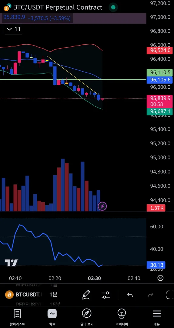 하락추세에 RSI 과매도 방향으로 하락..