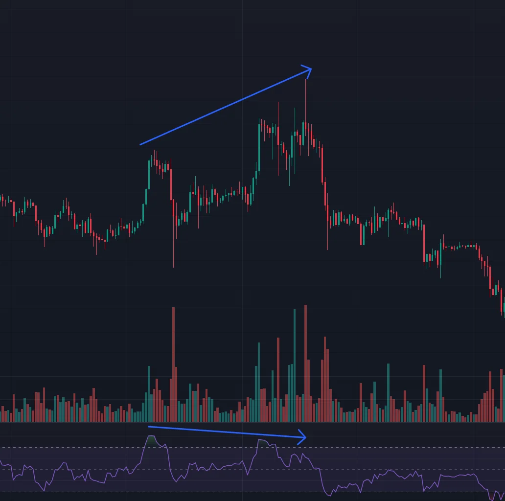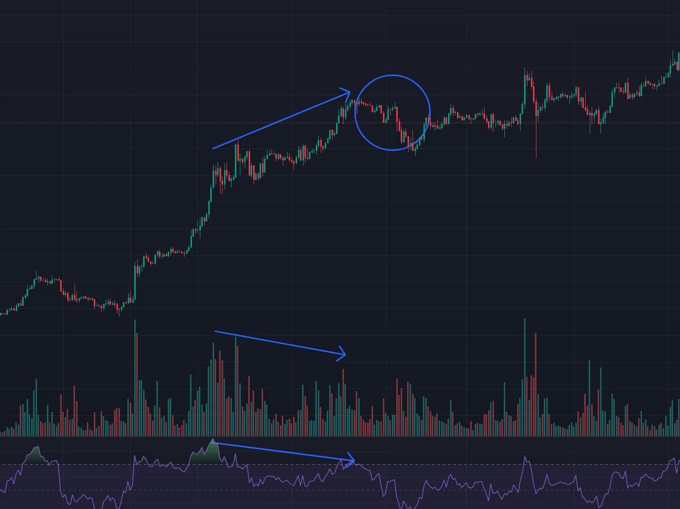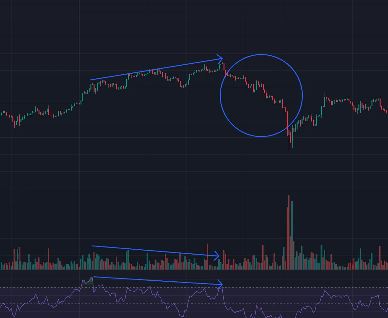 비트코인 가격의 상승과 동시에 rsi 지표 하락과 거래량의 감소를 보아 상승의 힘이 빠지는 것을 확인할 수 있었습니다.