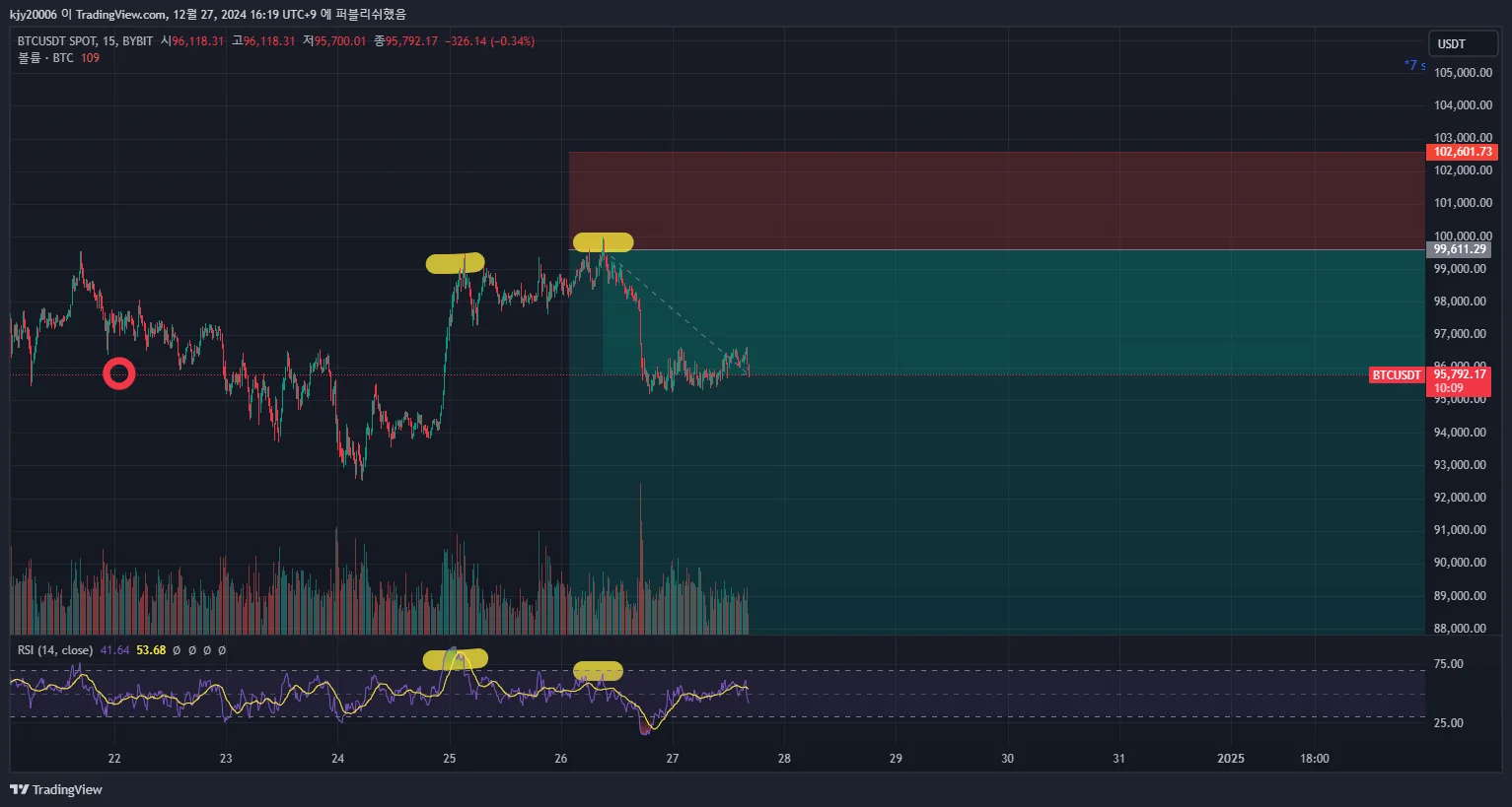 아래는 현재 비트코인 하락다이버젼스 입니다.