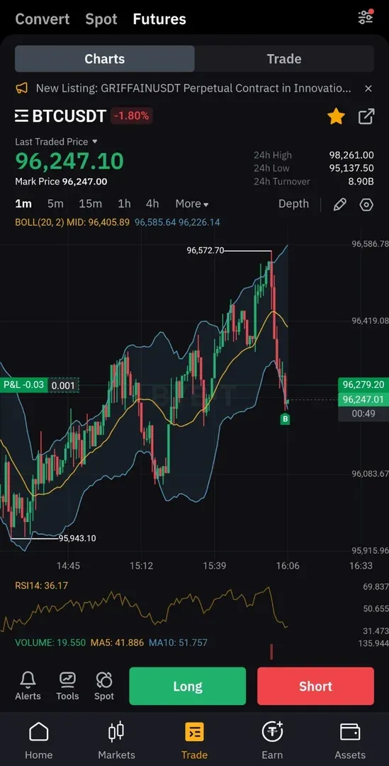 1분봉상 rsi가 30근처에서 돌아나오려는 듯한 움직임과 1분봉에서 양봉이 잡히려는 움직임이 포착되어 스켈핑관점에서