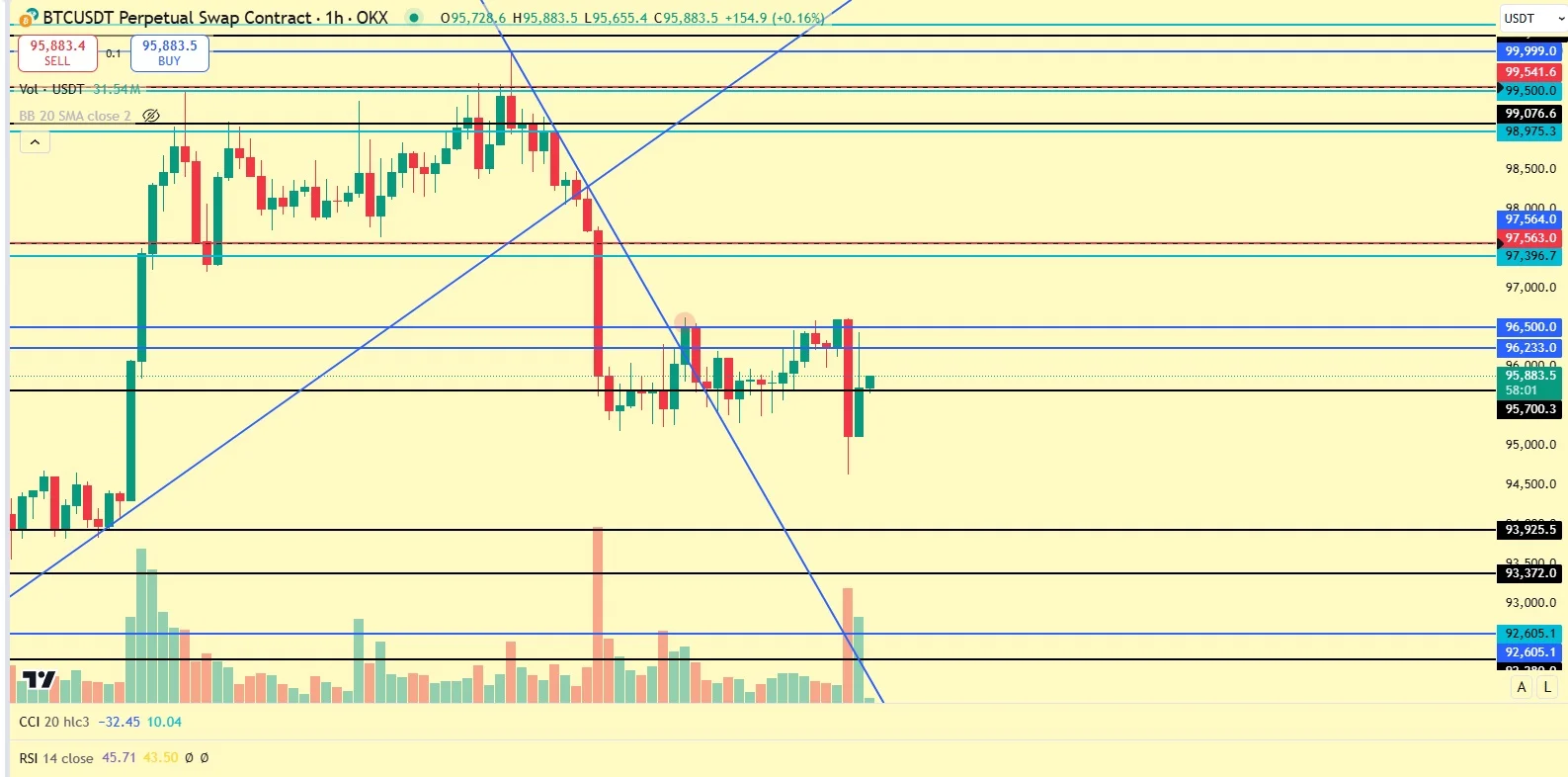거래량을 동반하여 추세선을 돌파하는 것을 보고 롱 포지션에 진입하였고 바닥을 다진 자리를 손절가로 잡고 최근 고점을 익절가로 잡았으나..