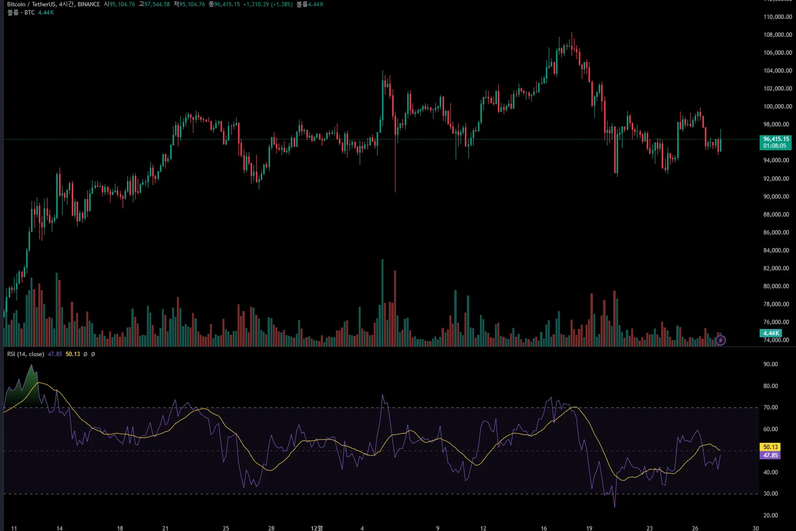 상대강도지수 RSI지표로 보는 시장상황은 거래량이 줄어들며 RSI지수도 높지 않아 하락할수 있음을 암시하는것 같습니다.