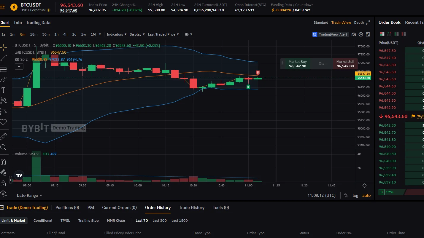 최근 비트코인이 계속 횡보 상태를 보이고 있기에 5분 차트로 단기 상승 추세에 있다고 판단하여