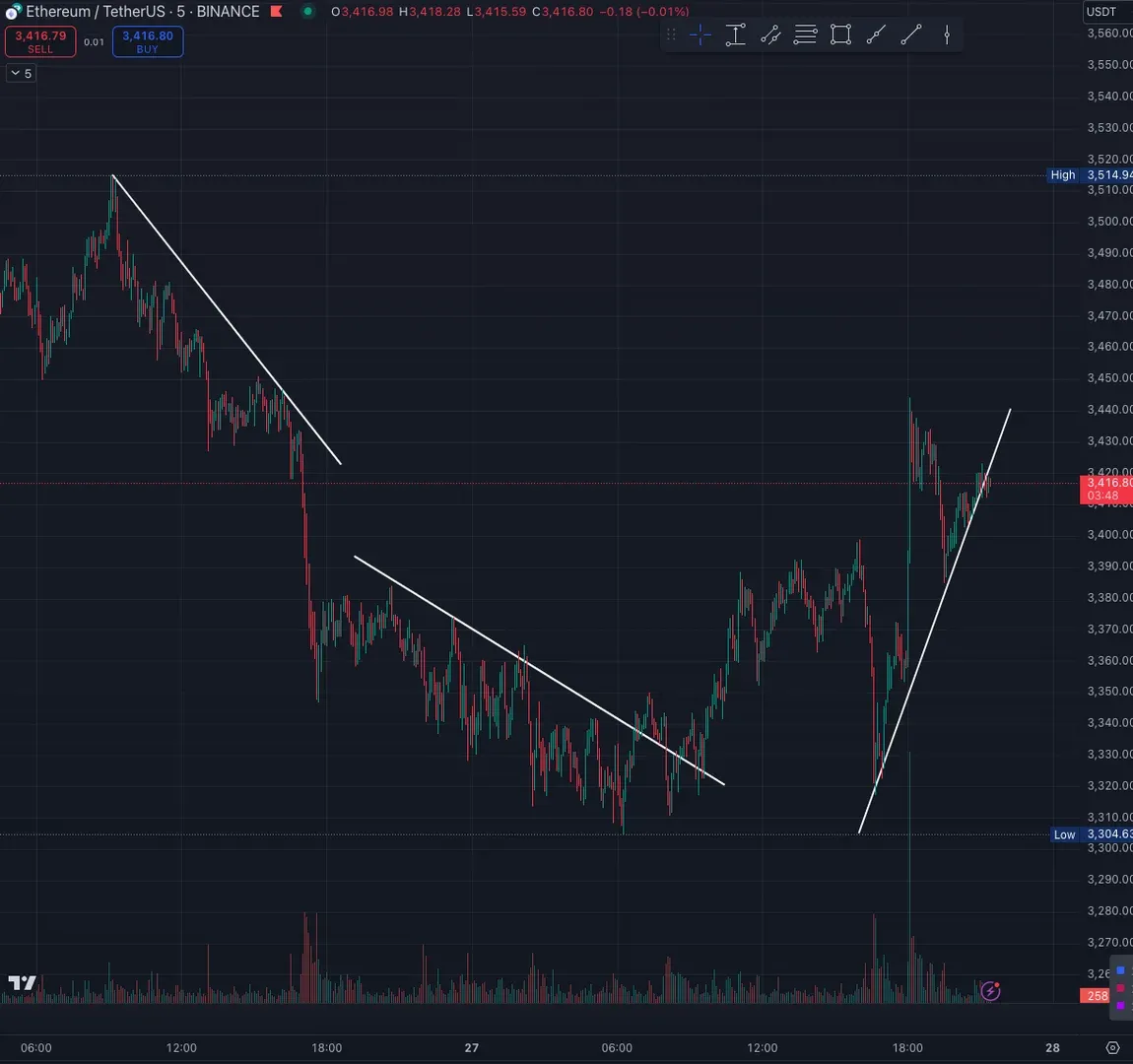 이더리움 5분봉으로 보이는 추세 모두 작도해봤습니다~