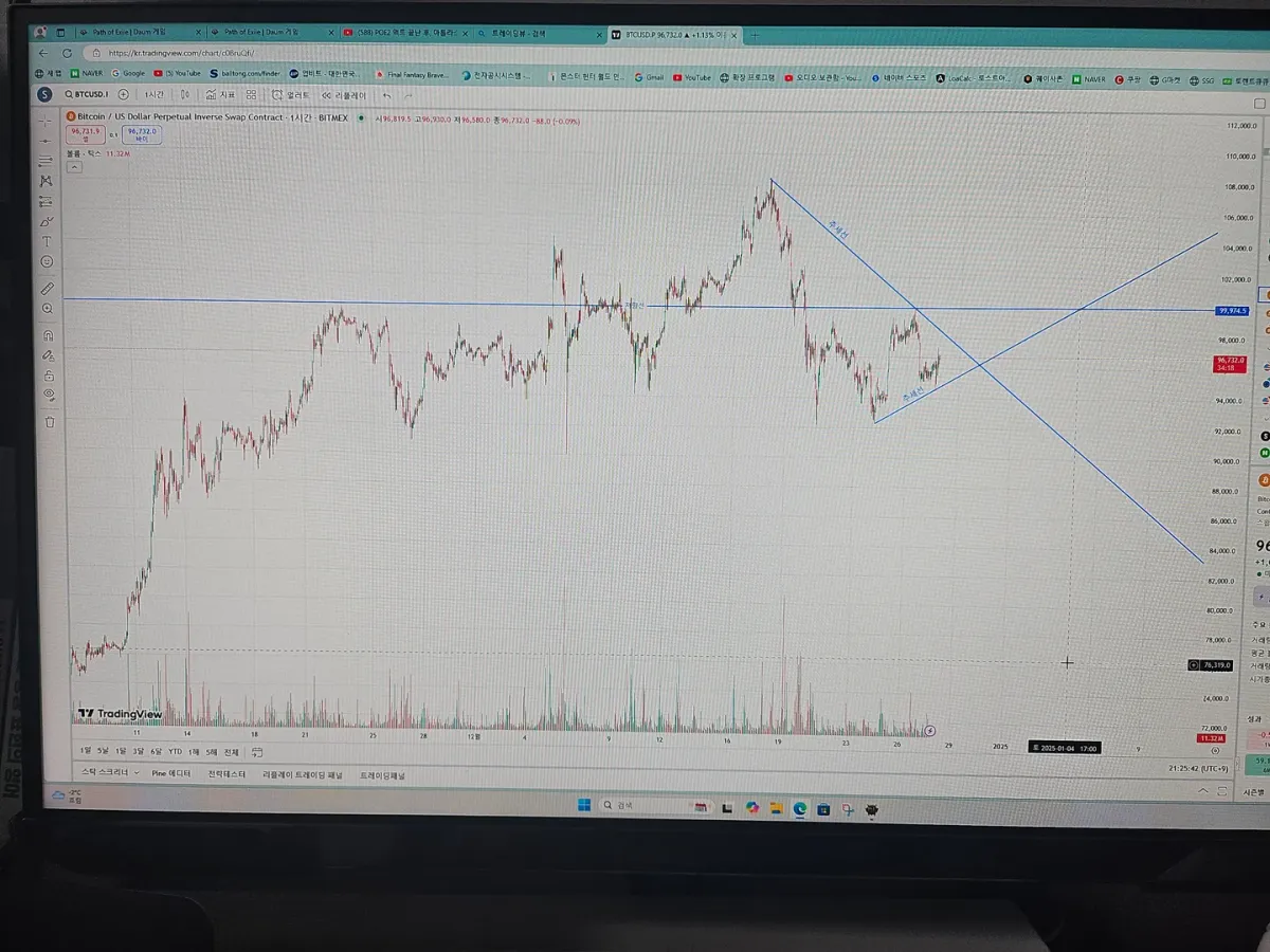 비트코인 1시간봉 저항 추세선 작도 해보았습니다