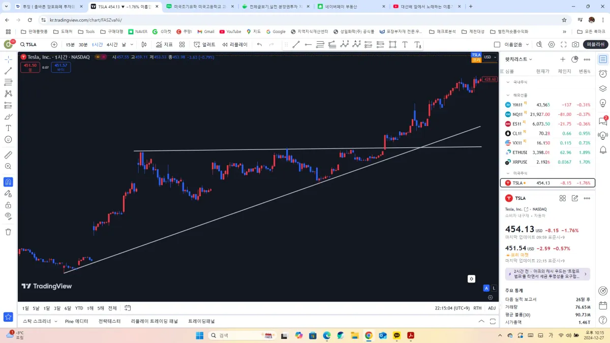 11월 12일과 26일을 저항선으로 설정했더니 12월 5일 저항을 뚫고 상승하는 모습을 보여주고, 추세선은 장기적으로 상승을 보여줍니다.