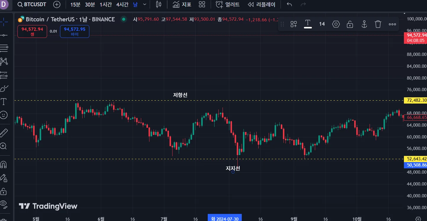 아직 모든 차트에서 지지선 상승선 박스권 등 적용하는건 어렵네요