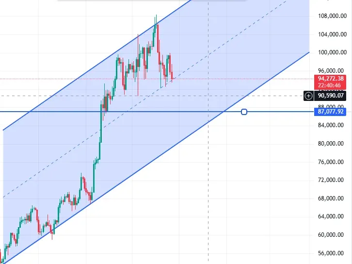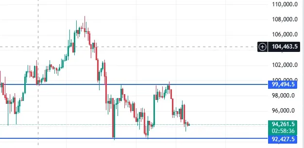 저항선: $99,500, 지지선: $92,400 으로 생각 됨