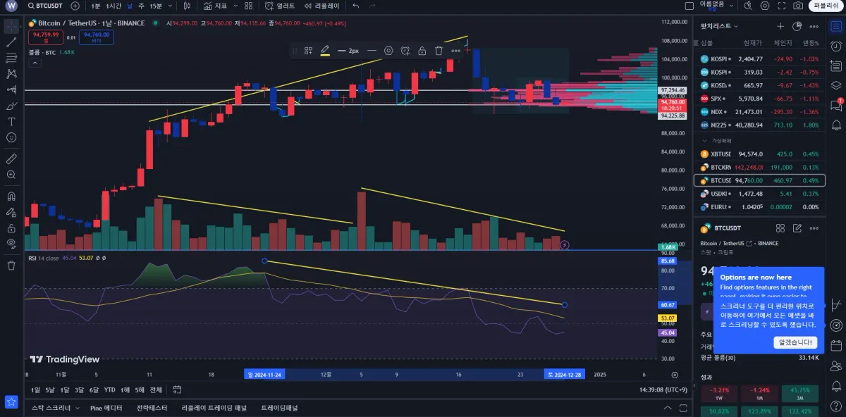 하락 다이버전스의 결과로 추세 반전이 일어나며 가격이 하락했음을 확인할 수 있었습니다.
