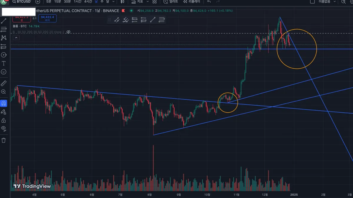 현재 가격대인 94000 부근 시세를 지켜준다면, 내일 (29일) 12 - 16시 사이 시세분출을 기대할 수 있겠습니다.