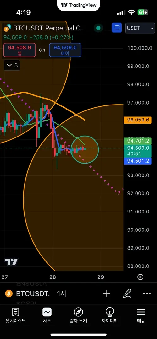 이제 단타를 하기 위한 포지션을 본다고 하기 위해 차트를 본다면 60일선에서 지지받고 반등하는지를 보며 롱으로 진입할 수 있겠고 방향이 맞았다면 20일선 부근에서 익절할수 있을거고 거기서 하방으로 내려온다면 다시 숏으로 갈아타 다시금 60일선이 뚫리는지 보다가 못 뚫으면 포지션 마감, 뚫으면 숏포지션 홀딩을 할것 같습니다.