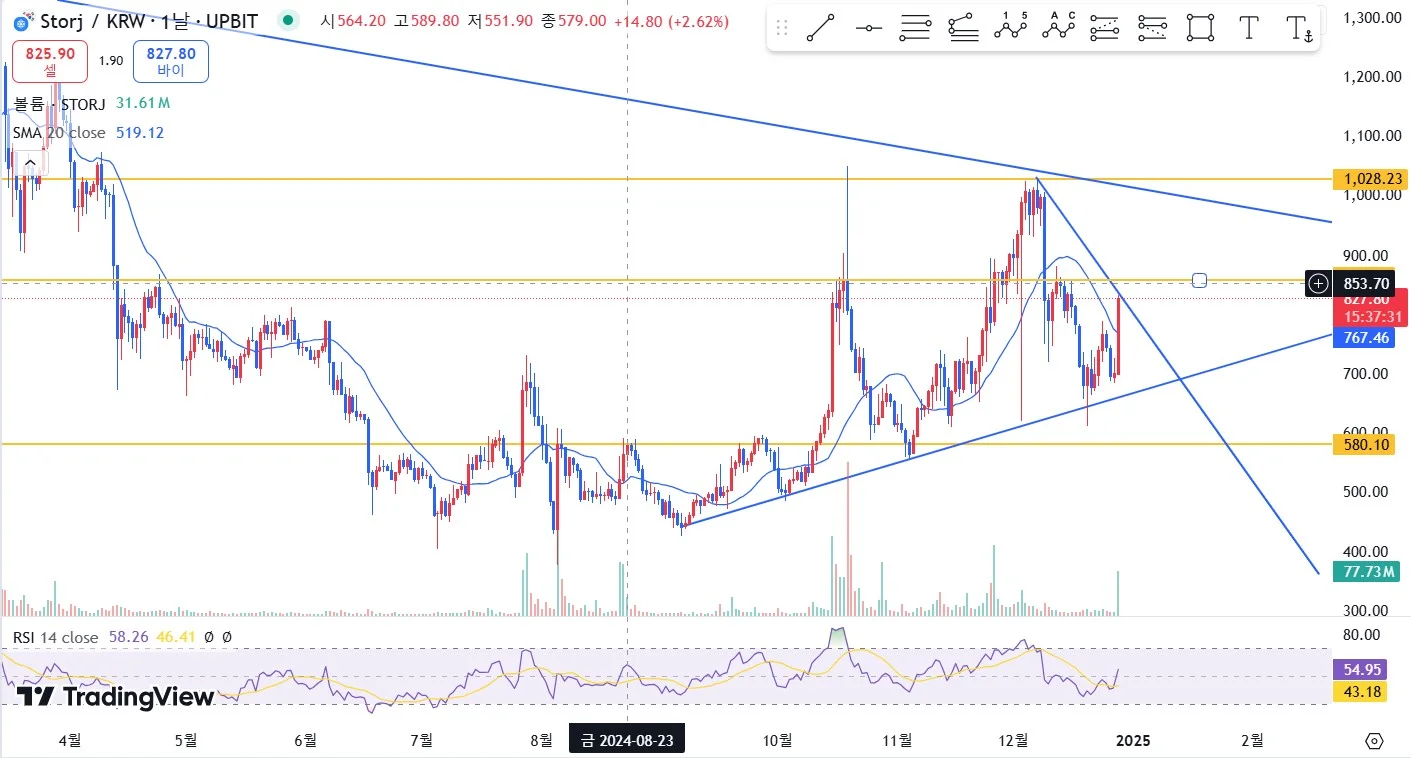 가지고있는 종목으로 평단700 지지선에 매수하였습니다.