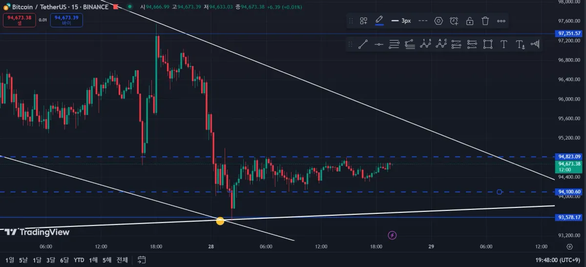 횡보하고 있어 리테스트 반응을 본 후에 진입해야 할 거 같습니다.