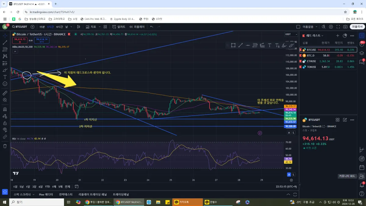 7일 챌린지[30일 챌린지 8기 1주차] 비트코인 날봉 추세선 및 지지선
