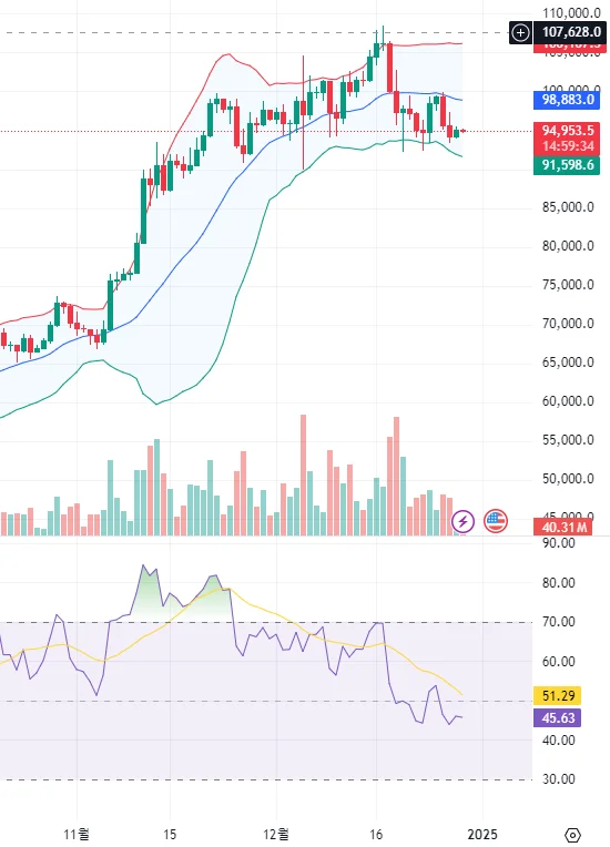 거래량도 줄어들고 있고, RSI지표도 하락하고 있어 단기적인 관점은
