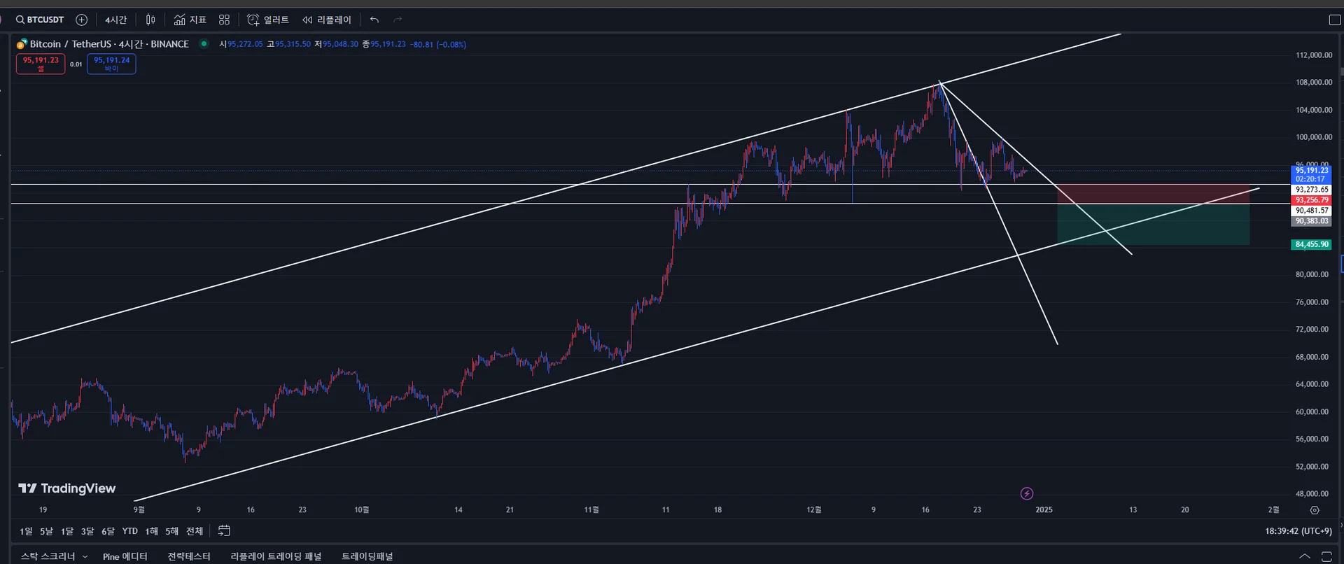 매도 포지션 시작은 두번째 지지선에서 매도 포지션 잡고 손절은 첫번째 지지선 까지 그리고 익절구간은 채널 하단 부