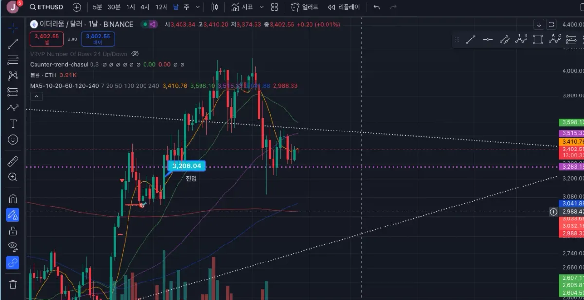 11월 말, 진입한 상태로 이더리움 홀딩중입니다.
