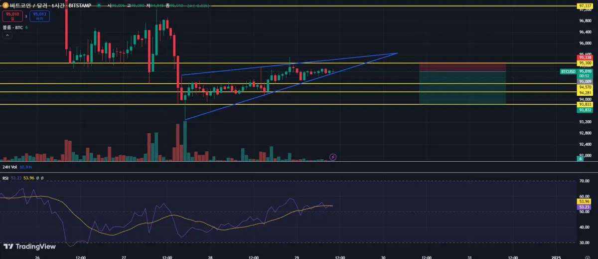 상승쐐기패턴 추세선 하방이탈확인후 리테스트때 숏포지션진입