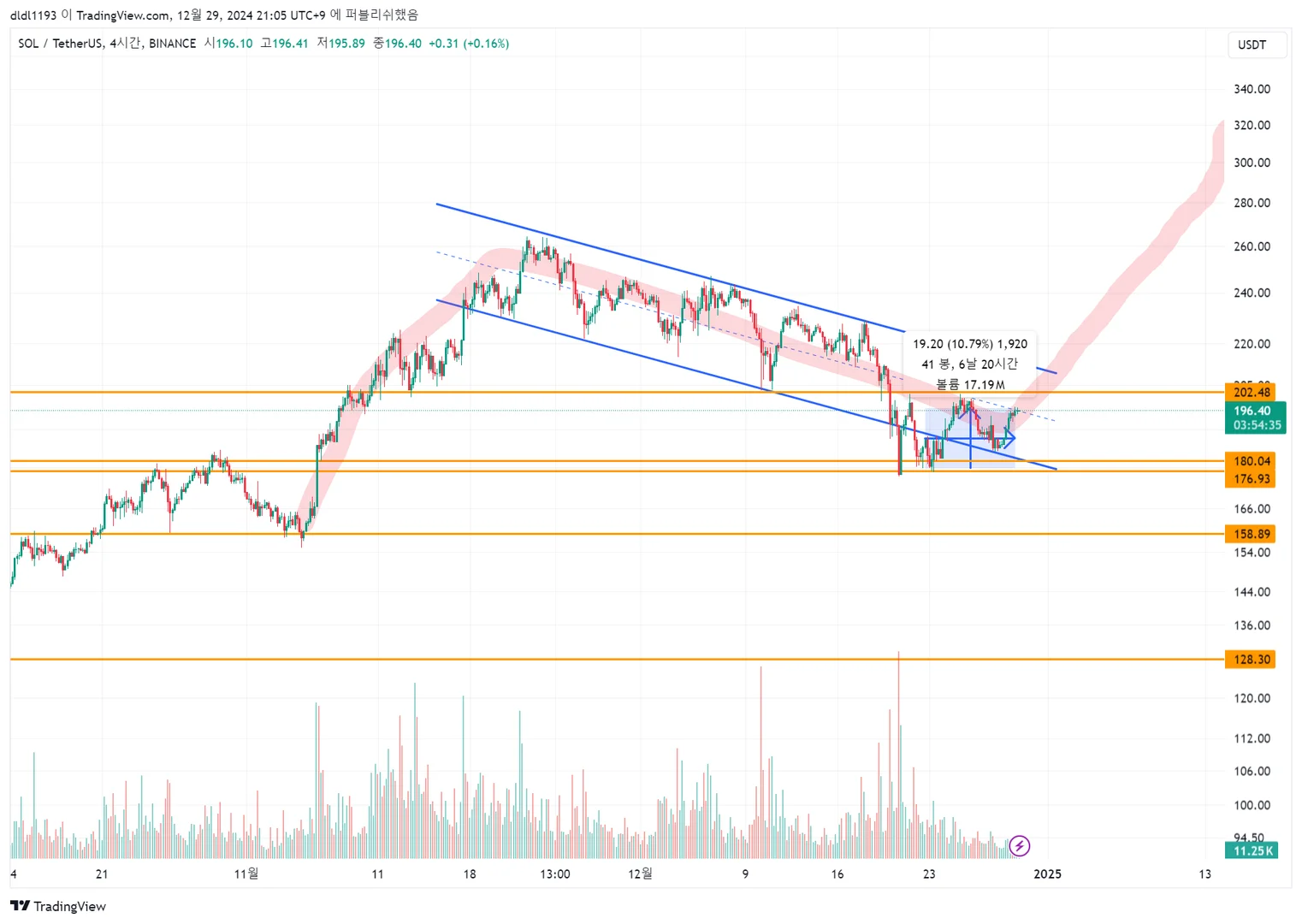 이후 다시 해당 가격대로 내려와줘서 다른 알트들에 비해 전저점 깨지 않고 잘 지지해주는 것 보고 잡아보았습니다.