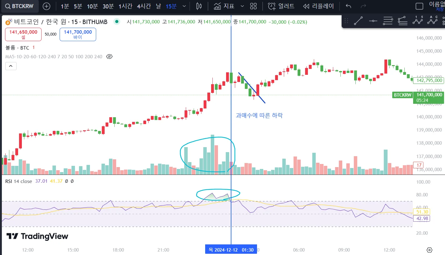 RSI지표를 이용&분석 과매수에 따른 소폭 하락 조정을 찾아 봤습니다.