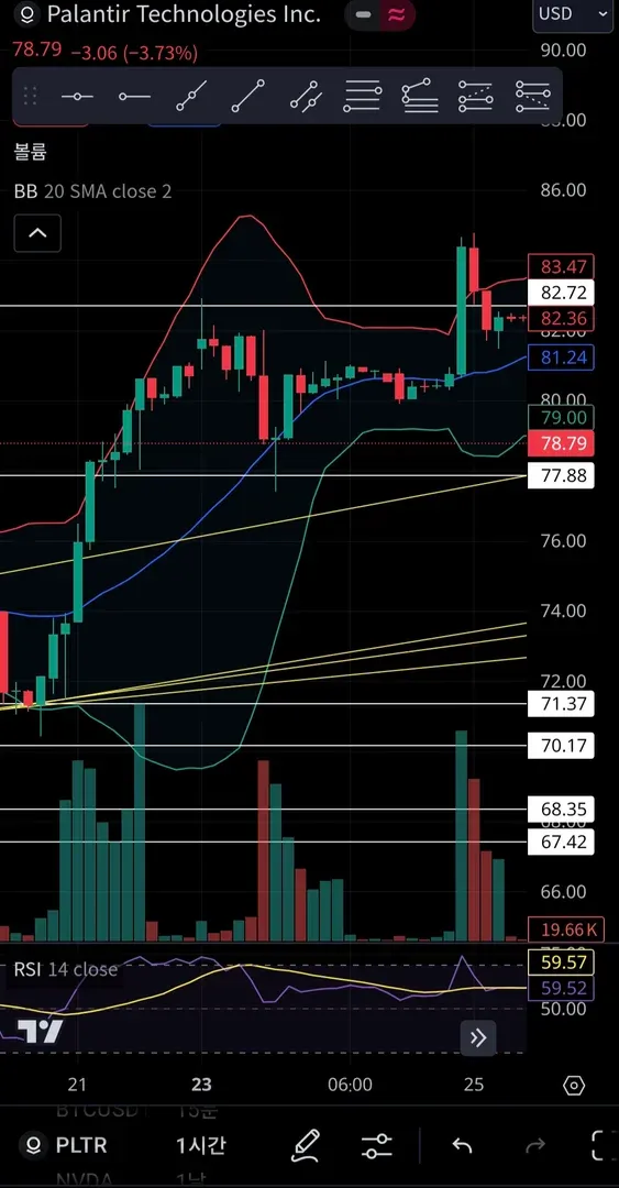 82.6 달러 저항선 터치 전에 조금씩 분할 익절 하여 82.6달러에 모든 물량 매도 하였습니다