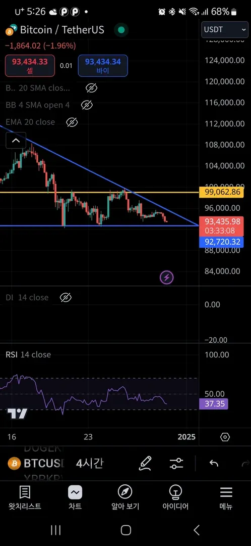깔끔한 작도입니다. 약간의 오타(?) 피드백을 드리자면 92720$는 현재가보다 아래에 있으므로, 저항선이 아니라 지지선이긴 합니다 ㅎㅎㅎ