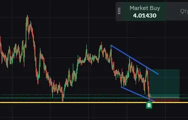 - 단기 하락 추세선 기준으로 폴링 웻지 패턴
