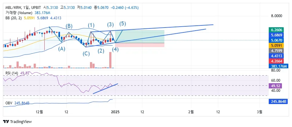 4파에 4.8$매수 매도 6.1$ 손절4.26$ 포지션손익비 2.5% 에상합니다.