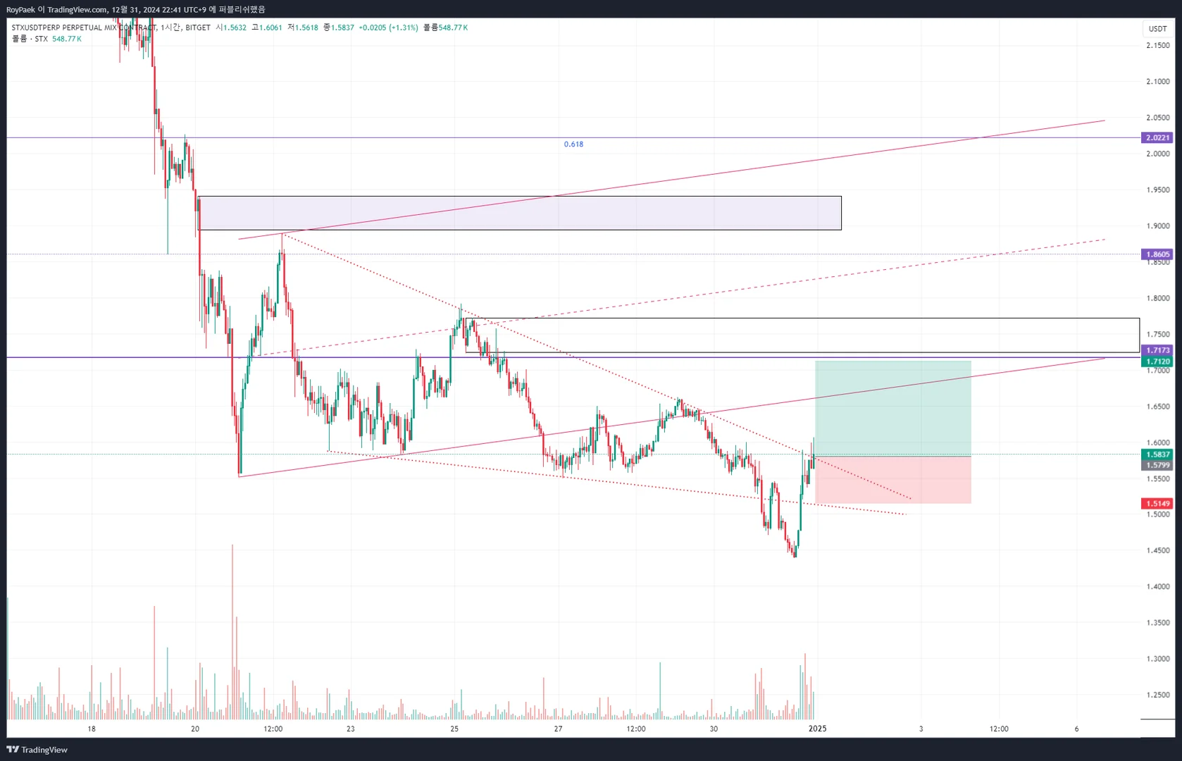 > 근거: 0.618 구간, 지지&저항 매물대, 4h 베어리쉬 엔걸핑 발생 구간