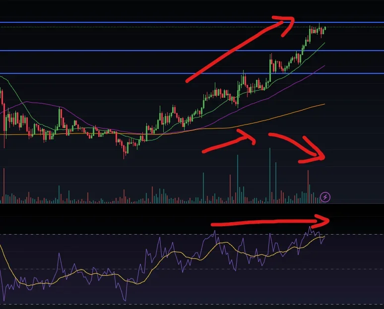 RSI 지표는 상대 강도 지수로 가격의 상승 압력과 하락 압력에 상대적 강도를 나타낸 것으로 거래량과 가격 세가지가 함께 지표 판단의 근거로 사용된다.