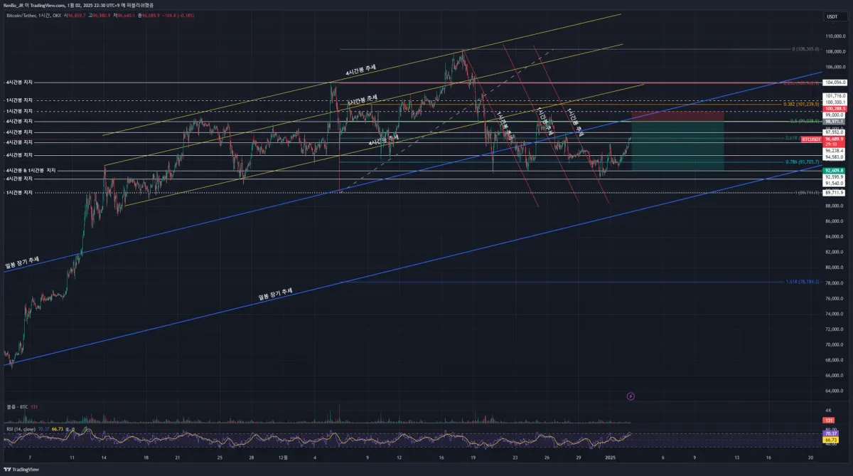 차트는 BTCUSDT/바이낸스를 사용안한 이유는 개인적으로 작도 해본게 있어서 OKX로 작도해보았습니다.