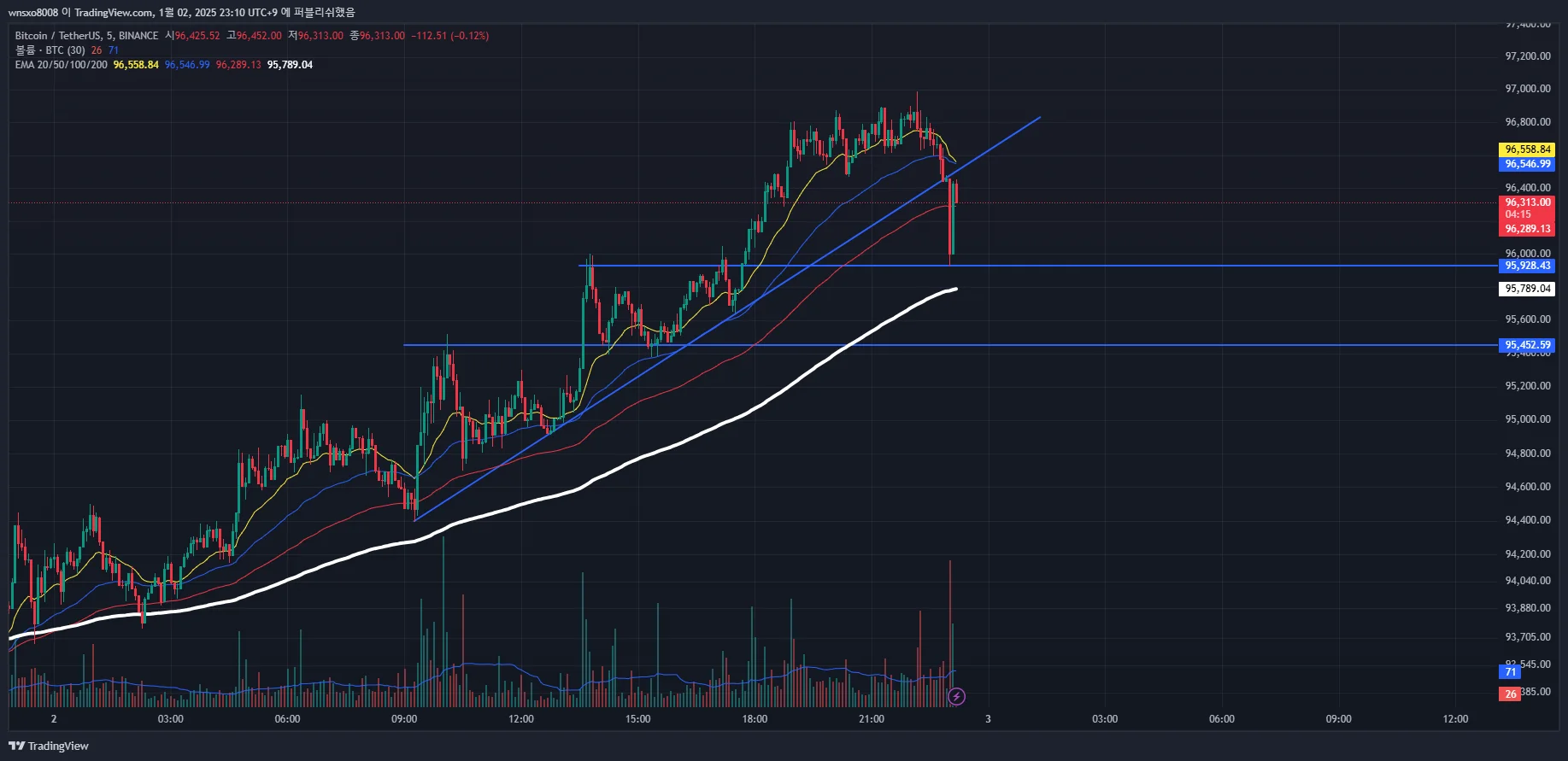 5분봉 차트로는 단기적 하락추세 전환되었다 생각합니다.