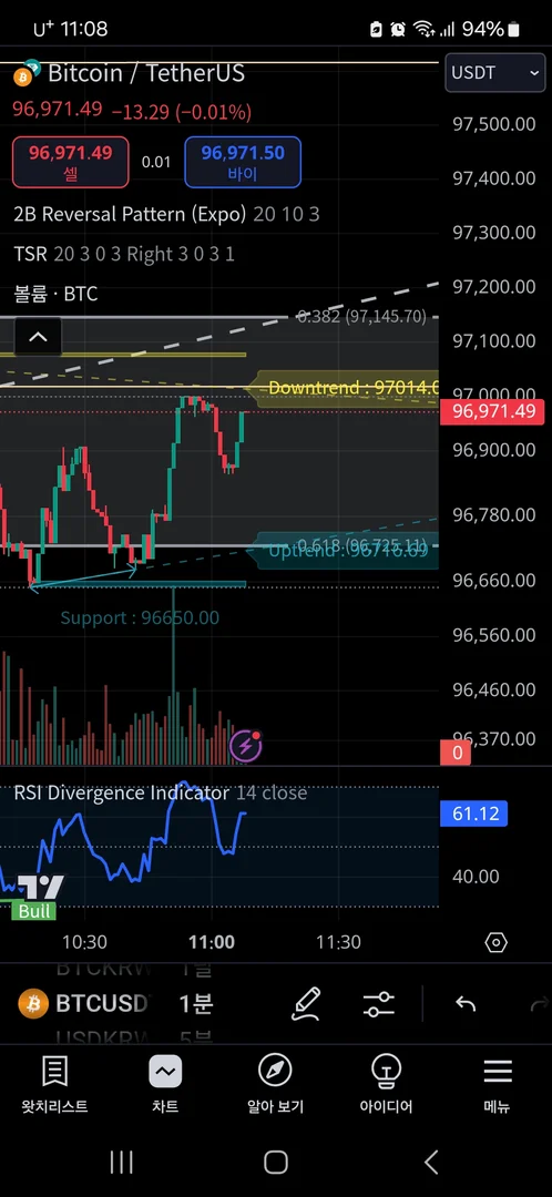 97,215 더이상 반등 하지못하고 내려와서 완익.