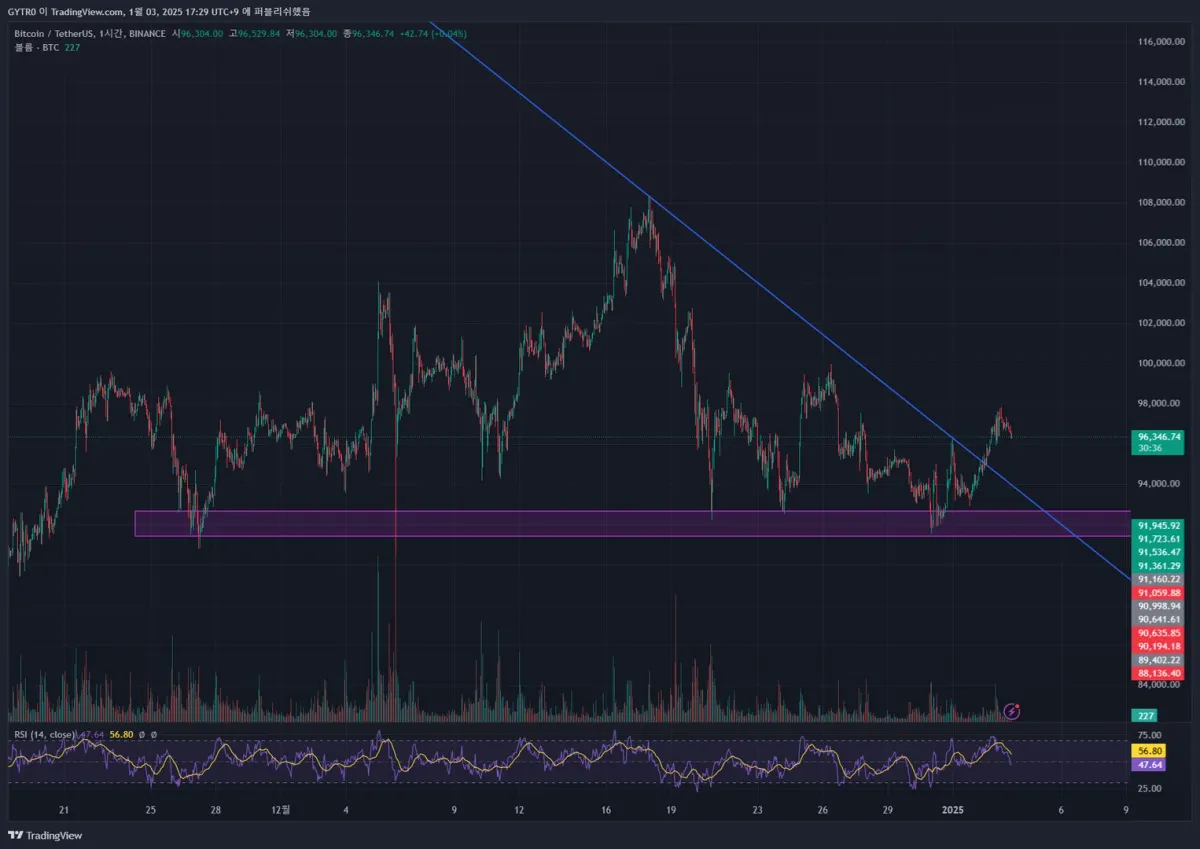 삼각 수렴을 통해서 상방 돌파가 이루어 졌고, 지지박스에서의 지지가 잘 이루어져 있는 모습을 파악 할 수 있었습니다. 결론적으로 지지박스로의 하락이 이루어 지더라도 매수 포지션을 잡으면서 수익을 기대해 볼 수 도 있을 것 같습니다.
