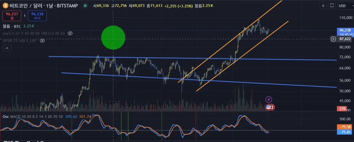 이렇게 선을 그어봤는데, 크게볼때는 상승국면이고,