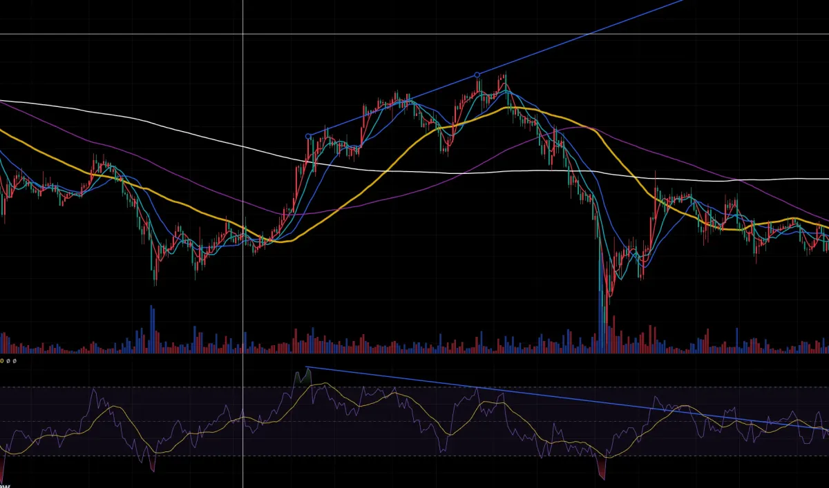 고점은 상승 하는데, rsi는 하락 다이버전스가 나오네요.