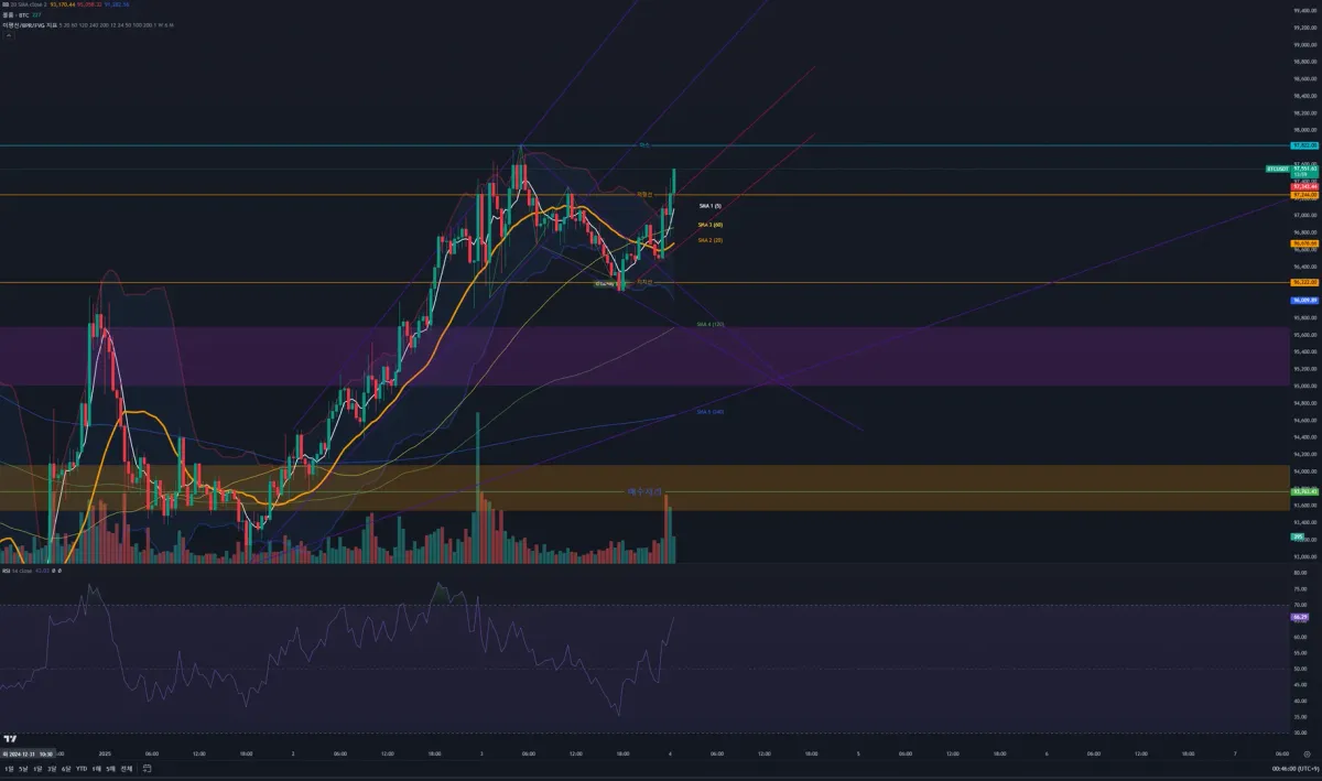 - 추세선 이탈 후 떨어질것으로 예상했으나 96,222 선에서 강력한 지지를 보여서 진입