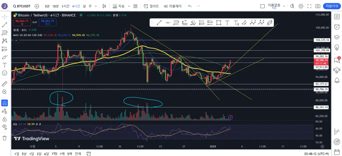 거래량을 기준으로 지지/ 저항선을 그어 보았습니다.
