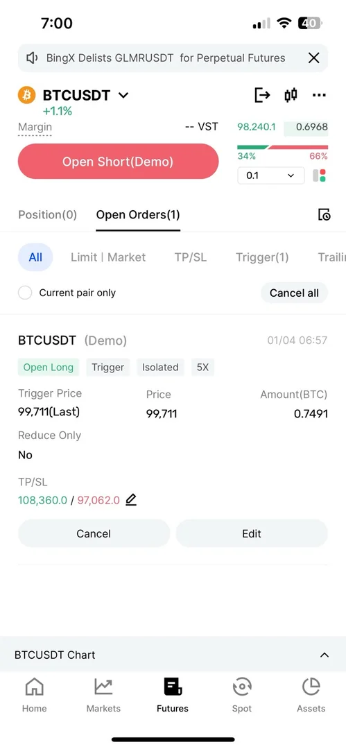 99711달러를 돌파할 때 매매를 하여 익절과 손절 부분을 잡아놓았습니다.