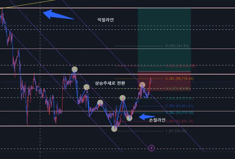 아쉬운 점은 손절가와 익절가의 범위가 큰 상태로 계산한 것 같습니다.