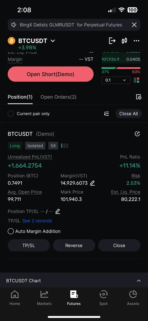 99711달러를 돌파할 때 매매를 하여 익절과 손절 부분을 잡아놓았습니다.