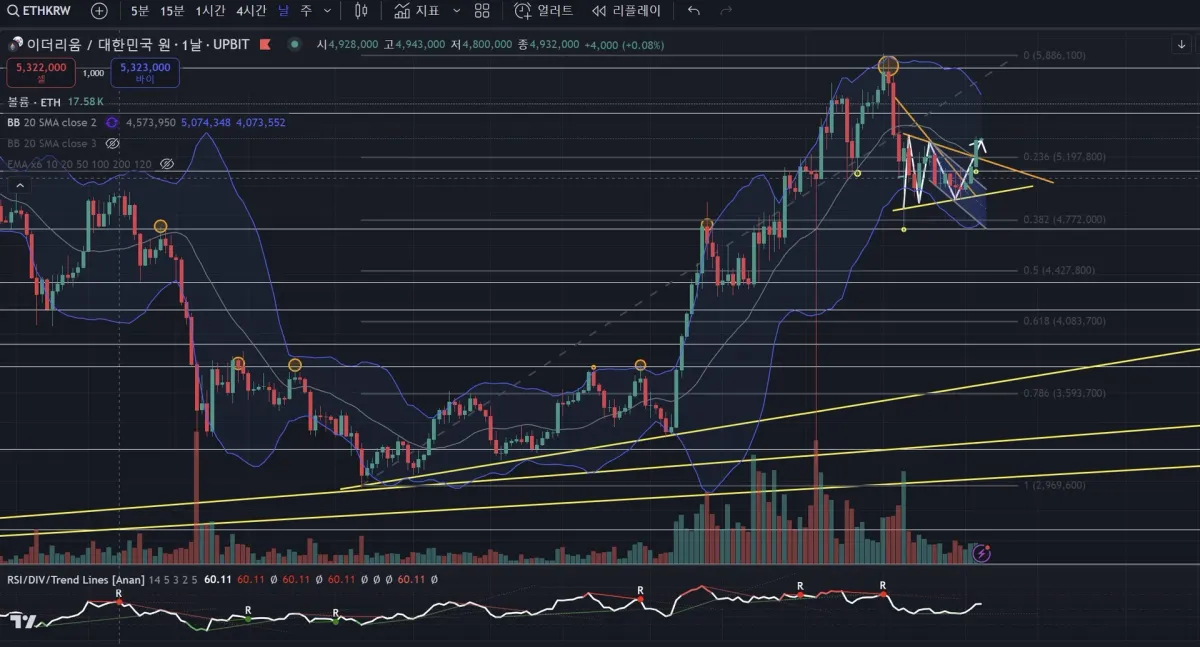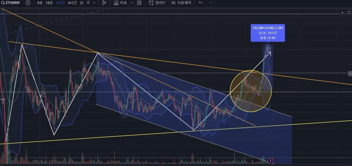 1. 이더리움 날차트에서 상승과 지지라인 작도
