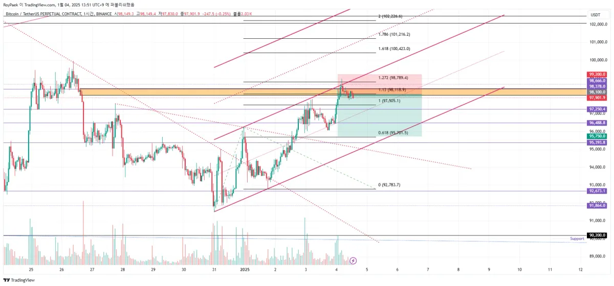 • 98850: 채널 상단 이전 고점